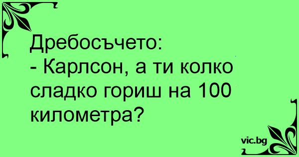 - Карлсон, а ти колко сладко гориш на 100 километра?
