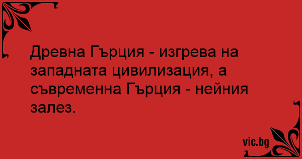 Древна Гърция - изгрева на западната цивилизация, а съвременна Гърция - нейния залез.