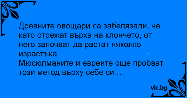 Древните овощари са забелязали, че като отрежат върха на клончето, от него започват да растат няколко израстъка.