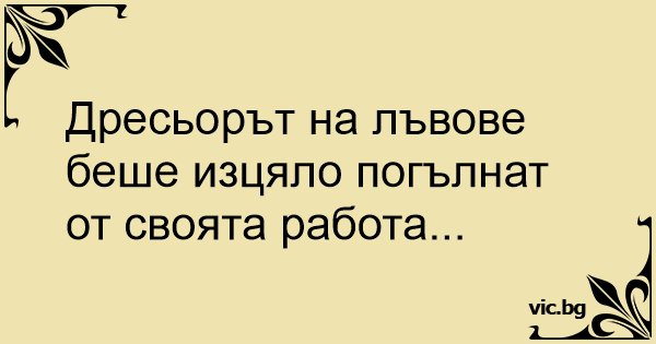 Дресьорът на лъвове беше изцяло погълнат от своята работа...