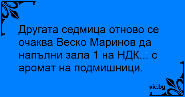 Другата седмица отново се очаква Веско Маринов да напълни зала 1 на НДК... с аромат на подмишници.