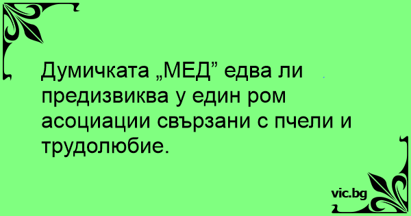 Думичката „МЕД” едва ли предизвиква у един ром асоциации свързани с пчели и трудолюбие.