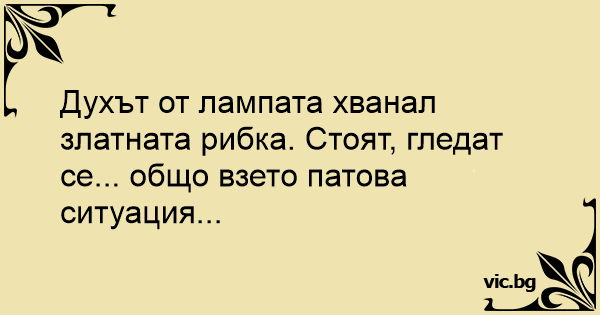 Духът от лампата хванал златната рибка. Стоят, гледат се... общо взето патова ситуация...