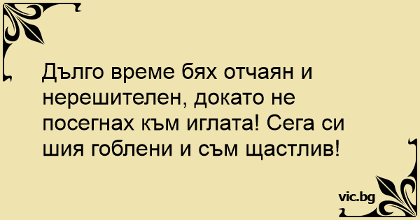 Дълго време бях отчаян и нерешителен, докато не посегнах към иглата! Сега си шия гоблени и съм щастлив!