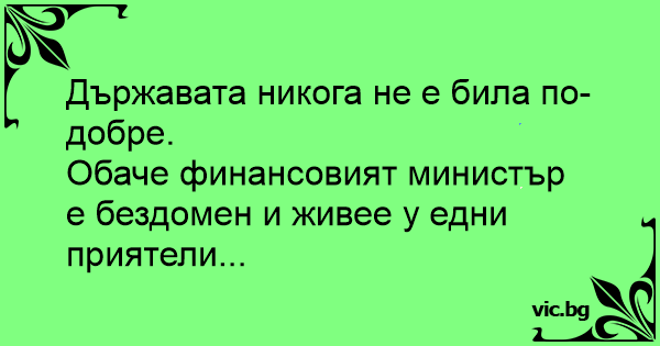 Обаче финансовият министър е бездомен и живее у едни приятели...