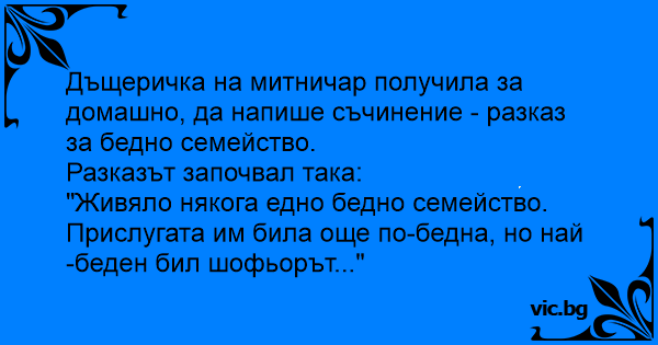 Дъщеричка на митничар получила за домашно, да напише съчинение - разказ за бедно семейство.