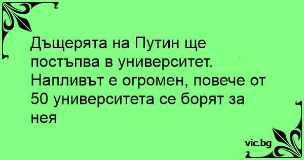 Дъщерята на Путин ще постъпва в университет.