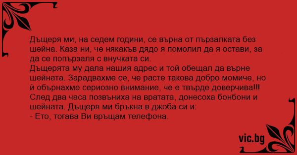 Дъщеря ми, на седем години, се върна от пързалката без шейна. Каза ни, че някакъв дядо я помолил да я остави, за да се попързаля с внучката си.