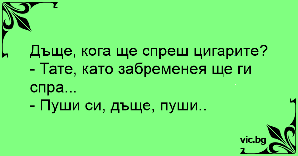 - Доню, ти коли палити кинеш? - Тату, завагітнію і кину .. - Пали, доню, пали ..