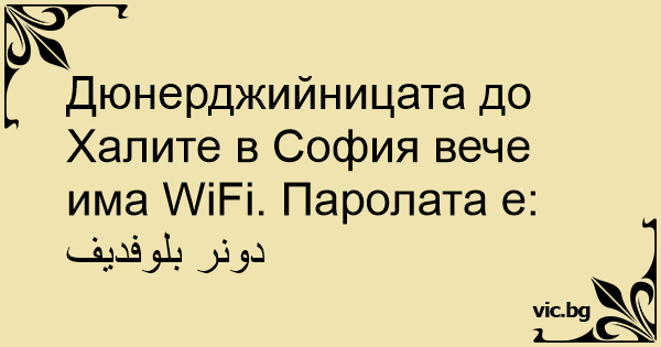 Дюнерджийницата до Халите в София вече има WiFi. Паролата е: