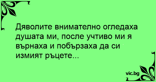 Дяволите внимателно огледаха душата ми, после учтиво ми я върнаха и побързаха да си измият ръцете...