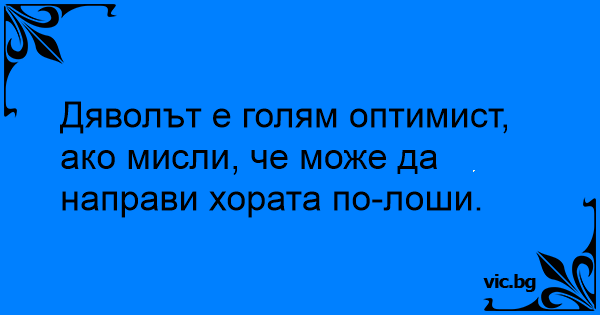 Дяволът е голям оптимист, ако мисли, че може да направи хората по-лоши.