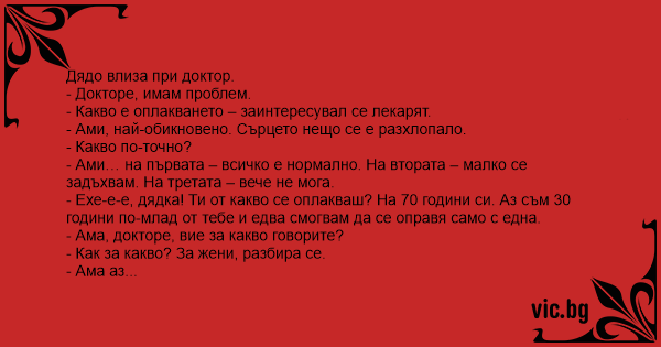• Вицове от Facebook от нашата страница https://www.facebook.com/www.vic.bg