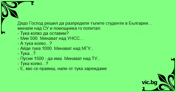 Дядо Господ решил да разпределя тъпите студенти в България...