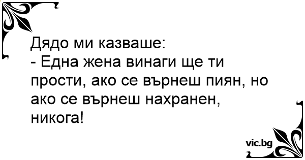 - Една жена винаги ще ти прости, ако се върнеш пиян, но ако се върнеш нахранен, никога!