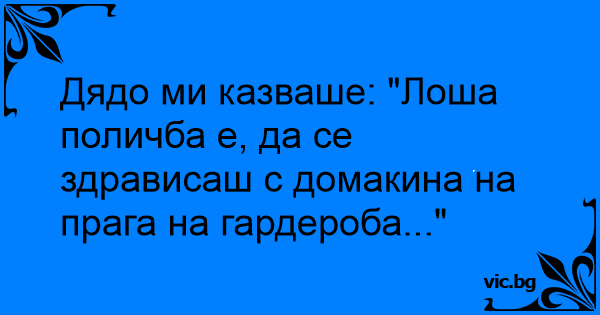 Дядо ми казваше: "Лоша поличба е, да се здрависаш с домакина на прага на гардероба..."