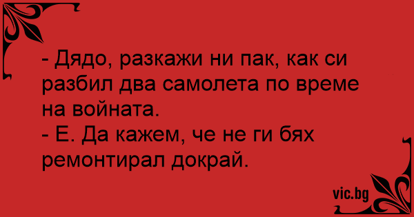 - Дядо, разкажи ни пак, как си разбил два самолета по време на войната.
