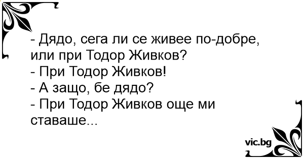 - Дядо, сега ли се живее по-добре, или при Тодор Живков?