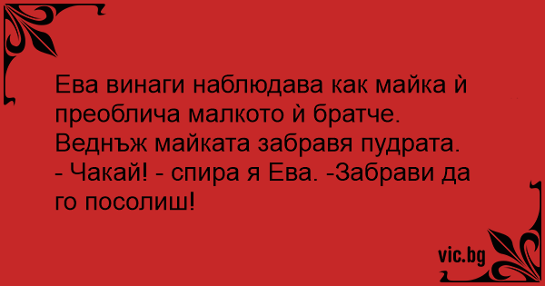 - Чакай! - спира я Ева. -Забрави да го посолиш!
