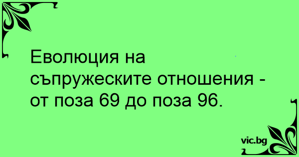 Еволюция на съпружеските отношения - от поза 69 до поза 96.