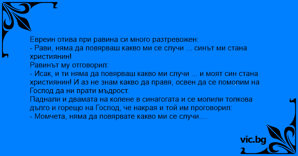 - Рави, няма да повярваш какво ми се случи ... синът ми стана християнин!