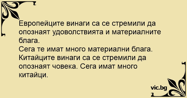 Сега те имат много материални блага. Китайците винаги са се стремили да опознаят човека. Сега имат много китайци.