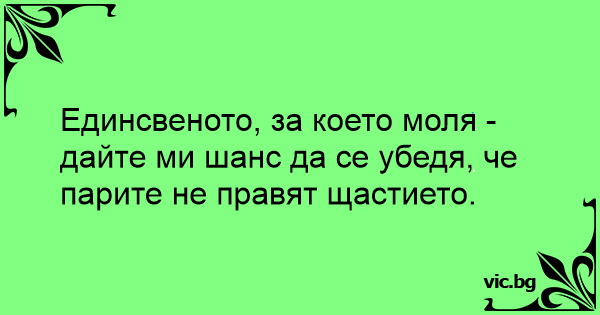 Единсвеното, за което моля - дайте ми шанс да се убедя, че парите не правят щастието.