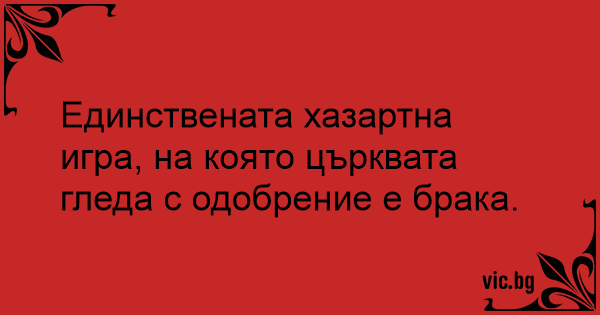 Единствената хазартна игра, на която църквата гледа с одобрение е брака.