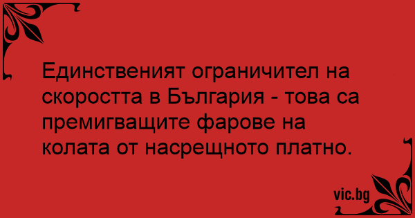 Единственият ограничител на скоростта в България - това са премигващите фарове на колата от насрещното платно.