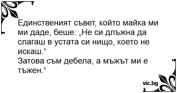Затова съм дебела, а мъжът ми е тъжен.“