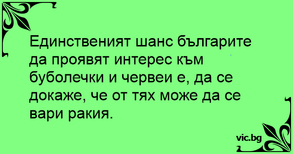 Единственият шанс българите да проявят интерес към буболечки и червеи е, да се докаже, че от тях може да се вари ракия.