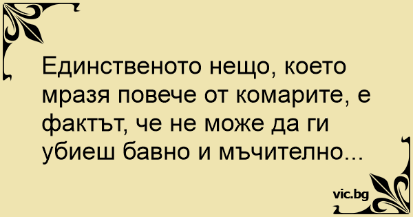 Единственото нещо, което мразя повече от комарите, е фактът, че не може да ги убиеш бавно и мъчително...