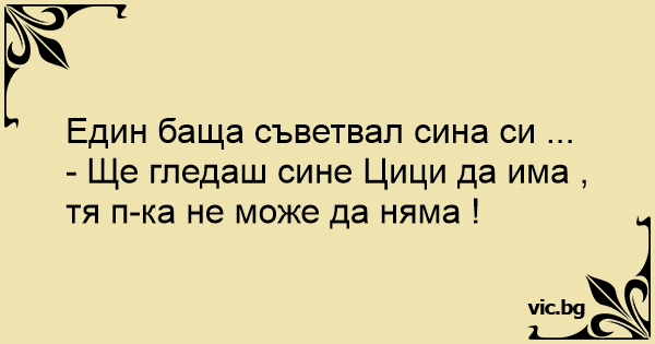 - Ще гледаш сине Цици да има , тя п-ка не може да няма !