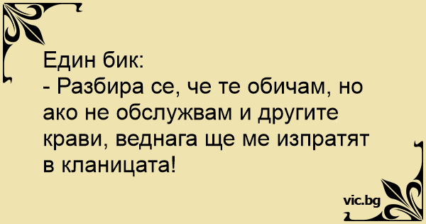 - Разбира се, че те обичам, но ако не обслужвам и другите крави, веднага ще ме изпратят в кланицата!