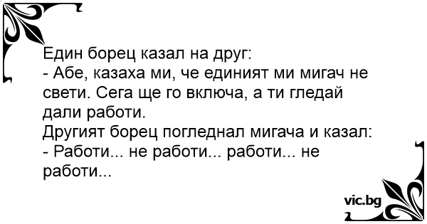 Другият борец погледнал мигача и казал:
