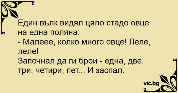 • Вицове от Facebook от нашата страница https://www.facebook.com/www.vic.bg
