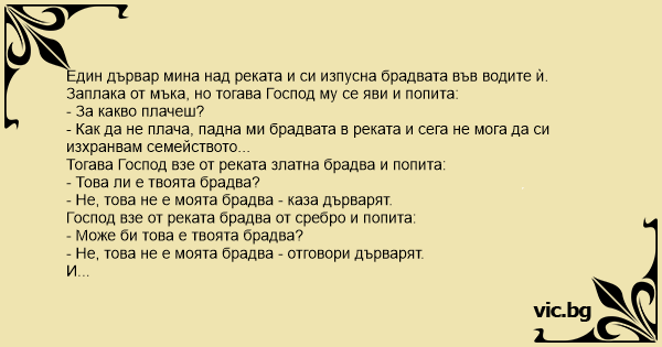 - Виждам, че си честен човек и съблюдаваш Моите заповеди, затова вземи като награда и трите брадви.