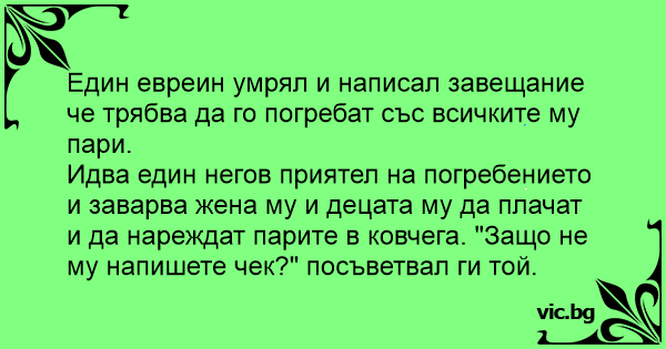 Един евреин умрял и написал...