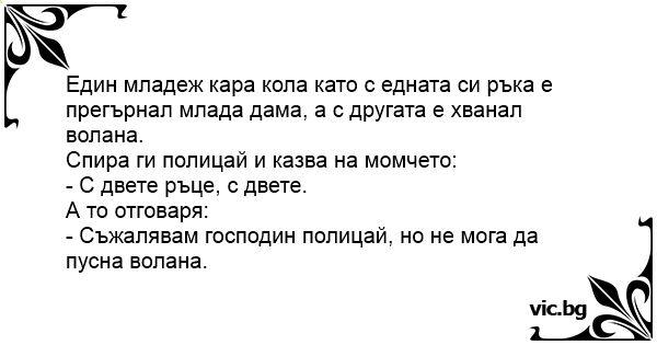 - Съжалявам господин полицай, но не мога да пусна волана.