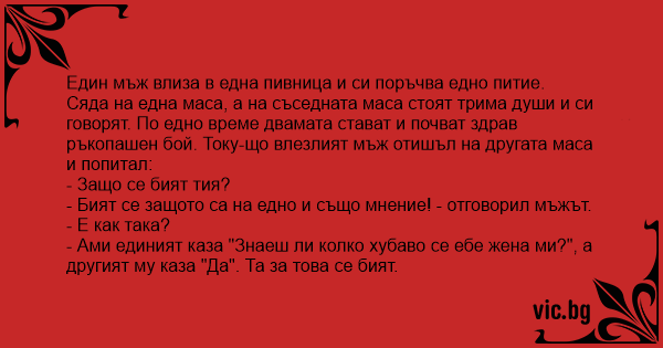 - Бият се защото са на едно и също мнение! - отговорил мъжът.