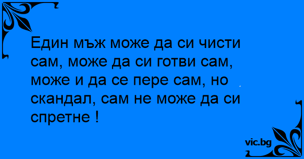 Един мъж може да си чисти сам, може да си готви сам, може и да се пере сам, но скандал, сам не може да си спретне !