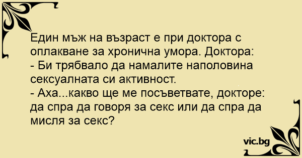 Един мъж на възраст е при доктора с оплакване за хронична умора. Доктора: