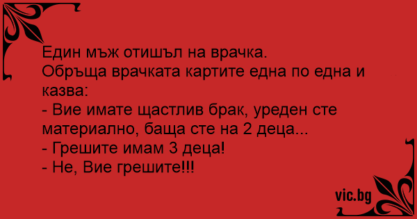 Оди Цветко кај некоја гатачка и таа му вели: - Имате две деца. - Така ти си мислиш, јас имам три деца! - Не, ти така си мислиш!