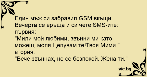 Вечерта се връща и си чете SMS-ите: