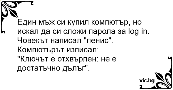 Един мъж си купил компютър, но искал да си сложи парола за log in.