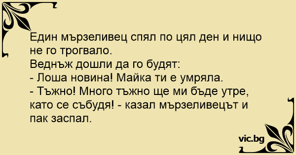 - Тъжно! Много тъжно ще ми бъде утре, като се събудя! - казал мързеливецът и пак заспал.
