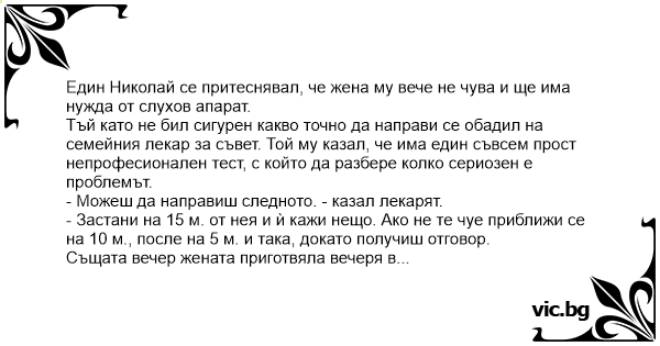 Един Николай се притеснявал, че жена му вече не чува и ще има нужда от слухов апарат.