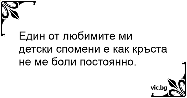 Един от любимите ми детски спомени е как кръста не ме боли постоянно.