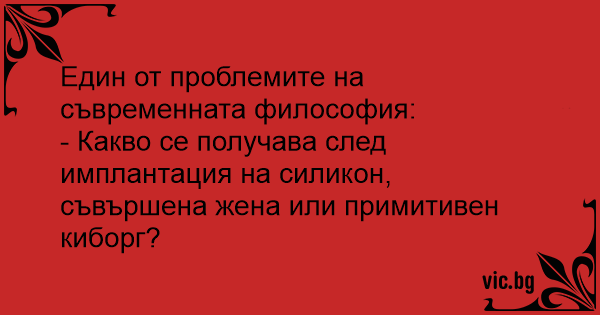 Един от проблемите на съвременната философия: - Какво се получава след имплантация на силикон, съвършена жена или примитивен киборг?