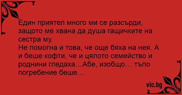 Не помогна и това, че още бяха на нея. А и беше кофти, че и цялото семейство и роднини гледаха…Абе, изобщо… тъпо погребение беше…